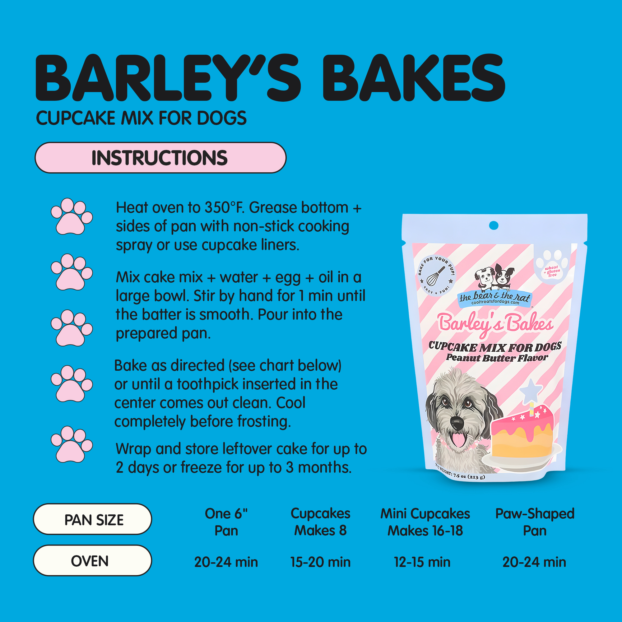 Celebrate Your Dog’s Special Moments. Used by loving pet owners who are interested in natural, additive-free pet products that are easy to prepare, it’s perfect for dog birthdays, gotcha days, adoption anniversaries, or everyday celebrations. This mix is used to bake personalized, wholesome cupcakes, cakes, or novelty-shaped treats (bone or paw) right at home.